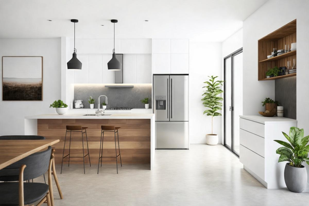 Une cuisine ouverte avec cellier,