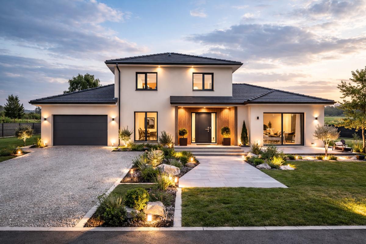 HABITBOIS constructeur régionale de maison individuelle vous propose, une spacieuse et lumineuse maison de 145m2 habitable + un double garage sur un terrain idéalement exposé, dans un environnement calme et recherché, à proximité de de toutes commodités.
